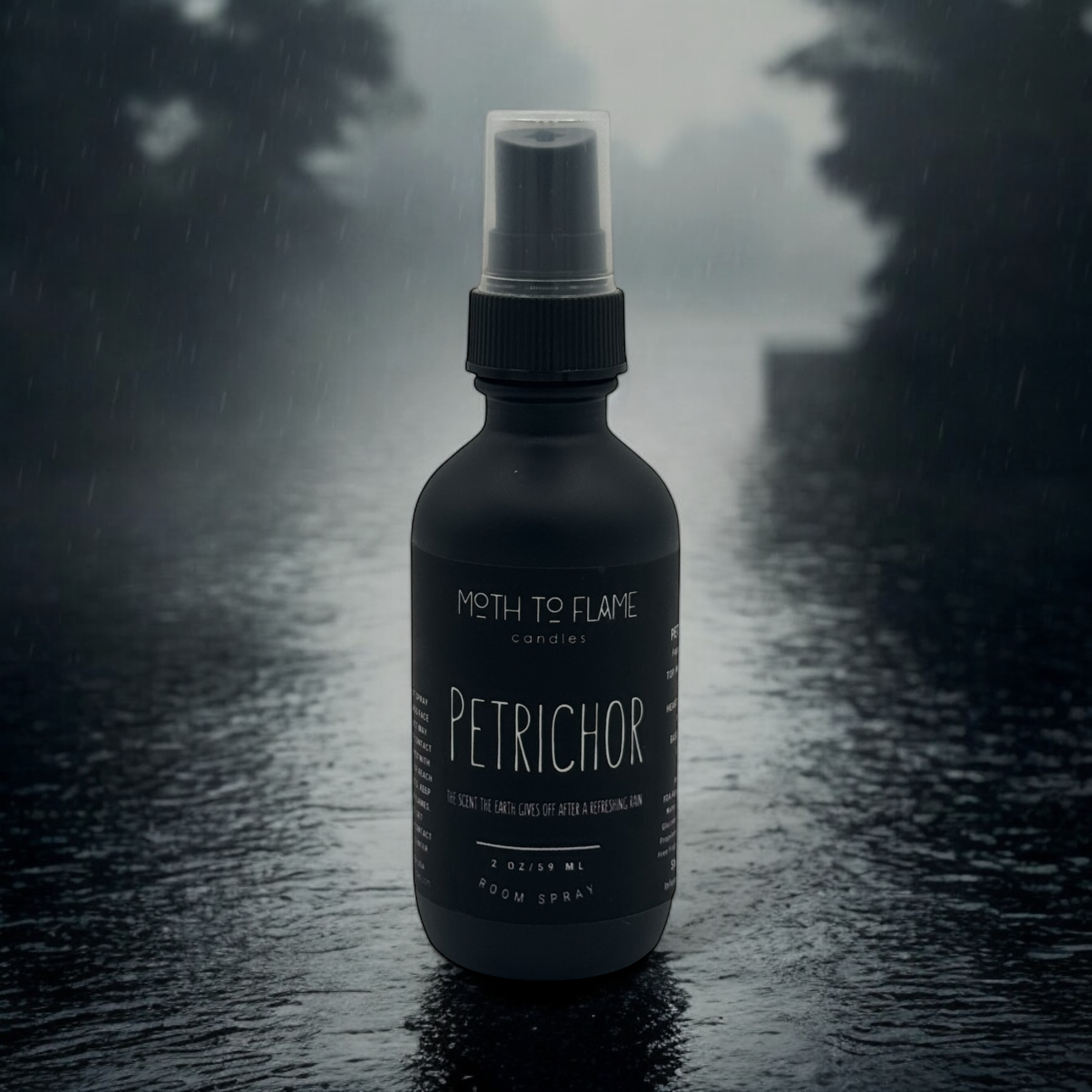 A scent that stops time. Rain-drenched earth, silver skies, and the first inhale after a storm.